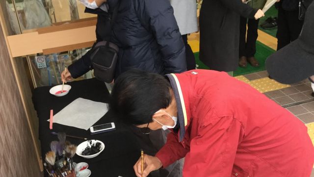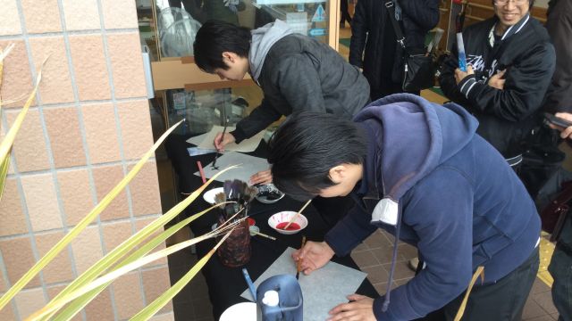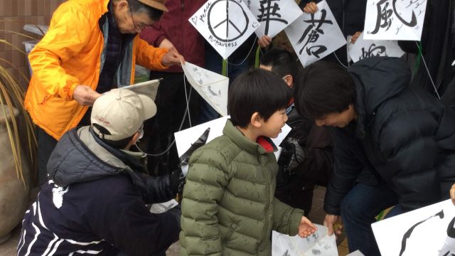 | 10:00 | 会場入口にて参加者が丸森和紙に揮毫。 ※揮毫した和紙は後日連凧に加工後、揚げます |