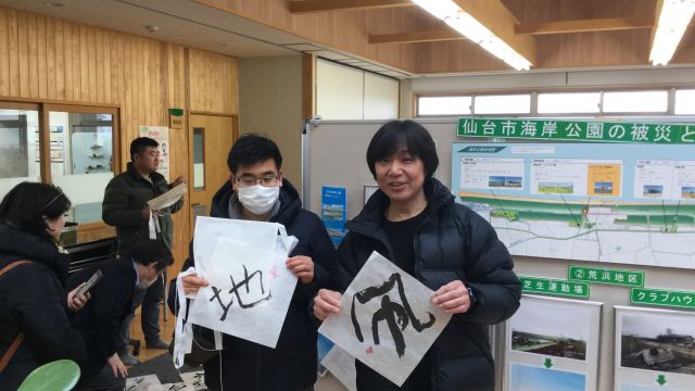 | 09:00 | NPO法人みんな一書、仙台凧の会メンバーを中心に集合。打ち合わせ。 県外(栃木、東京)から参加の方も。 新型コロナウイルス対策の影響で会場の一部使用できず。 |